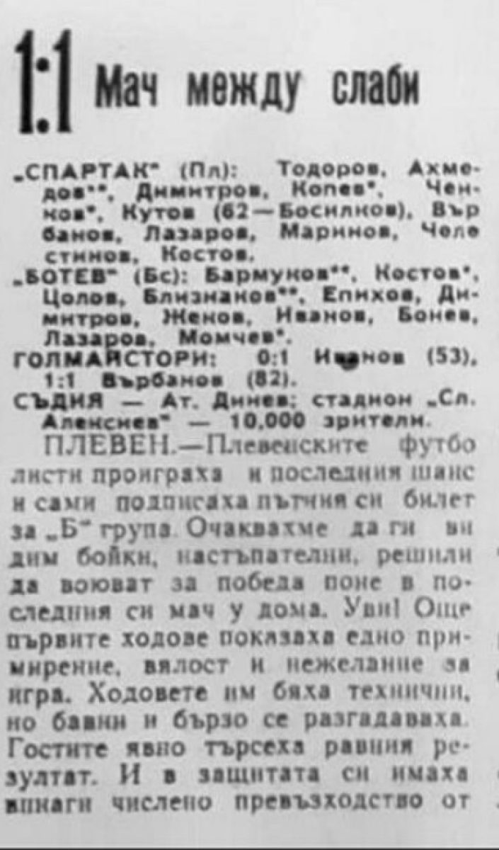 «Спартак» Плевен - «Ботев» Бургас - 1:1