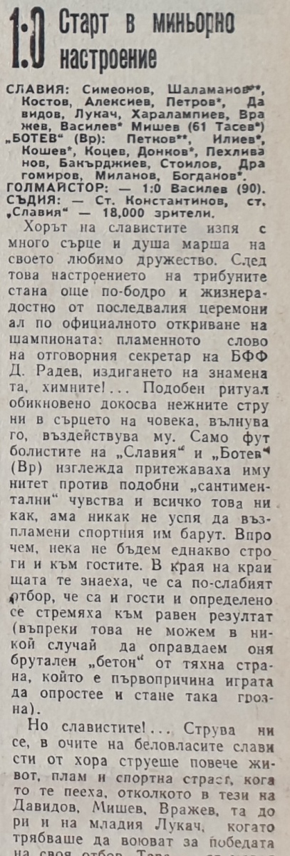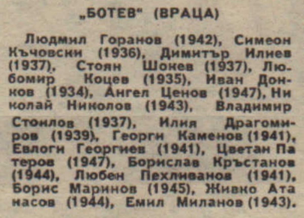 Георги Петков дебютировал в составе "Ботев" Враца ( из "Миньор" Враца), Любен Пехливанов ("Ботев" Враца) и Борислав Богданов ("Ботев" Враца) дебютировали в А РФГ ( из "Миньор" Враца и "Септември" София).