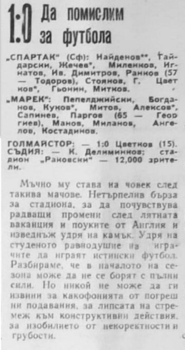 «Спартак» София - «Марек» Станке-Димитров - 1:0