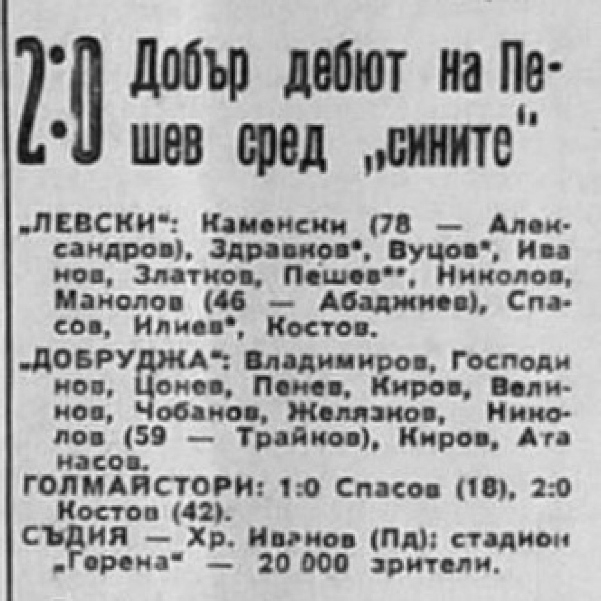 Стоичко Пешев дебютировал в составе «Левски» София (перешёл из ЦСКА «Ч. знаме» София)