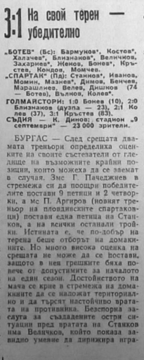 «Ботев» Бургас - «Спартак» Пловдив - 3:1