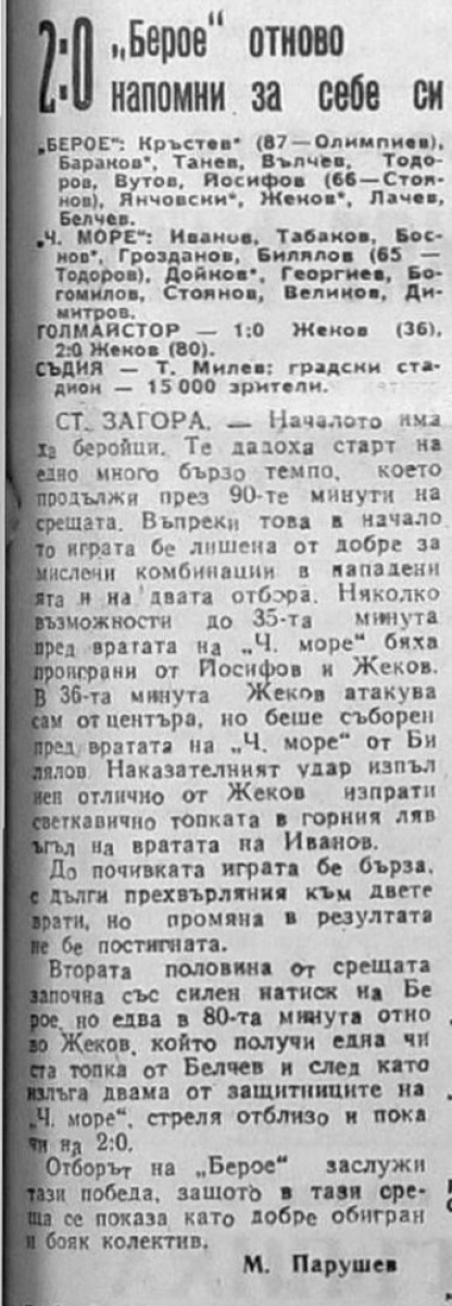«Берое» Стара-Загора - «Черно море» Варна - 2:0