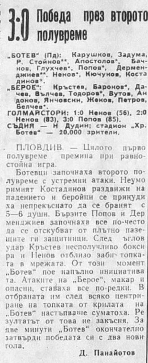 «КЦМ-Ботев» Пловдив - «Берое» Стара-Загора - 3:0