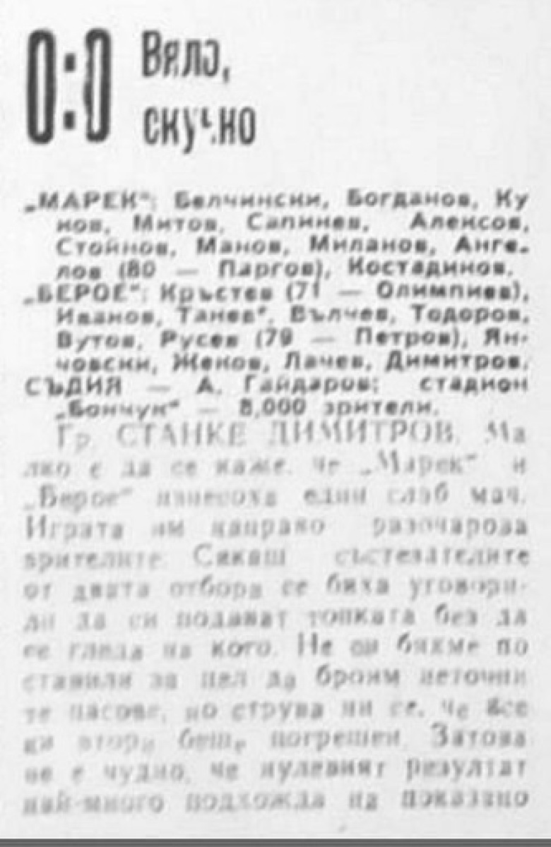 «Марек» Станке-Димитров - «Берое» Стара-Загора - 0:0