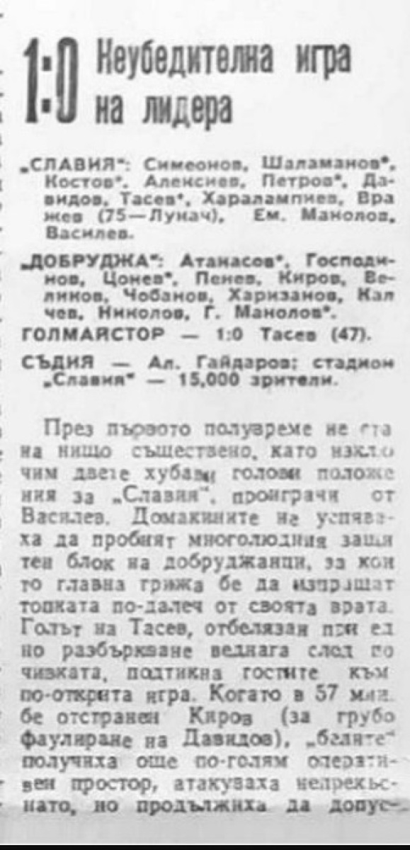 «Славия» София - «Добруджа» Толбухин - 1:0
