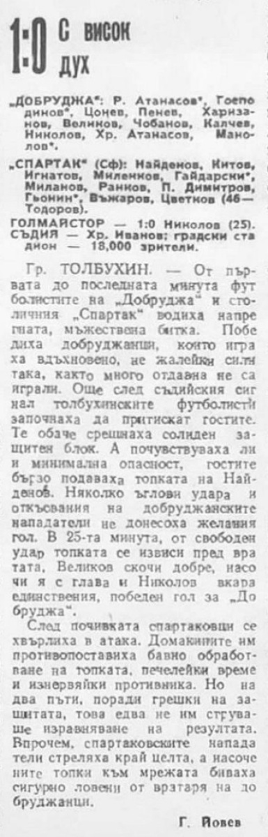 «Добруджа» Толбухин - «Спартак» София - 1:0