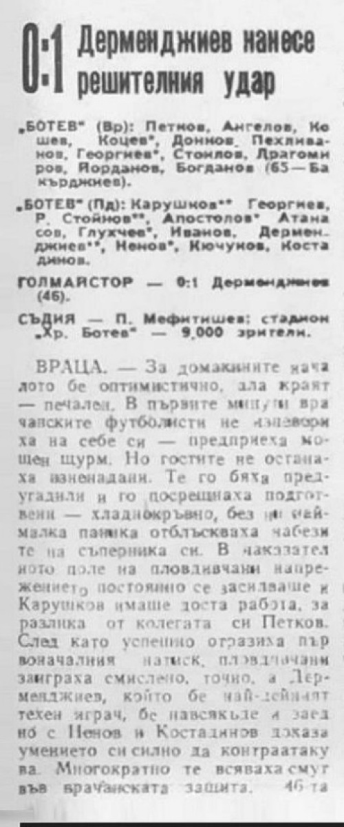 «Ботев» Враца - «КЦМ-Ботев» Пловдив - 0:1