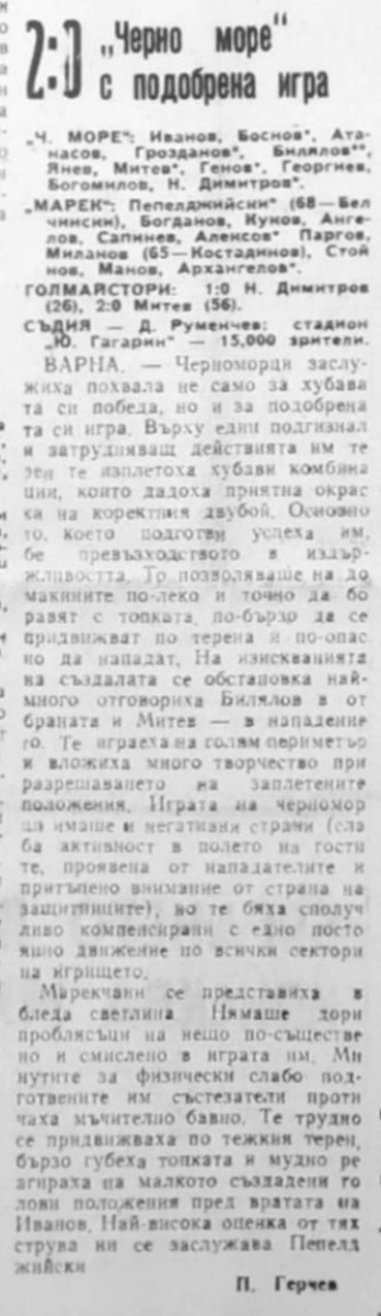 «Черно море» Варна - «Марек» Станке-Димитров - 2:0