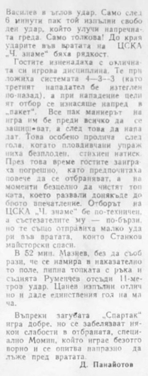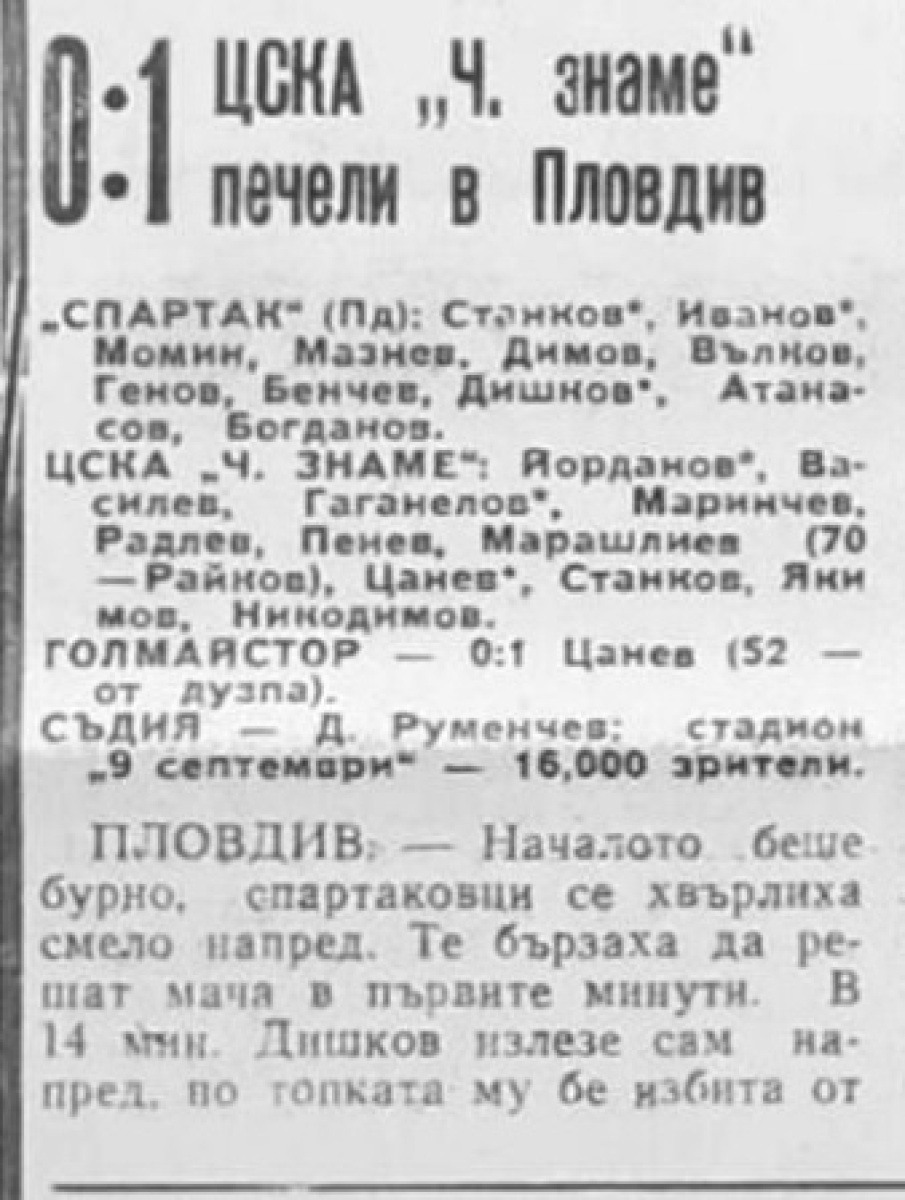 «Спартак» Пловдив - «ЦСКА Червено Знаме» София - 0:1