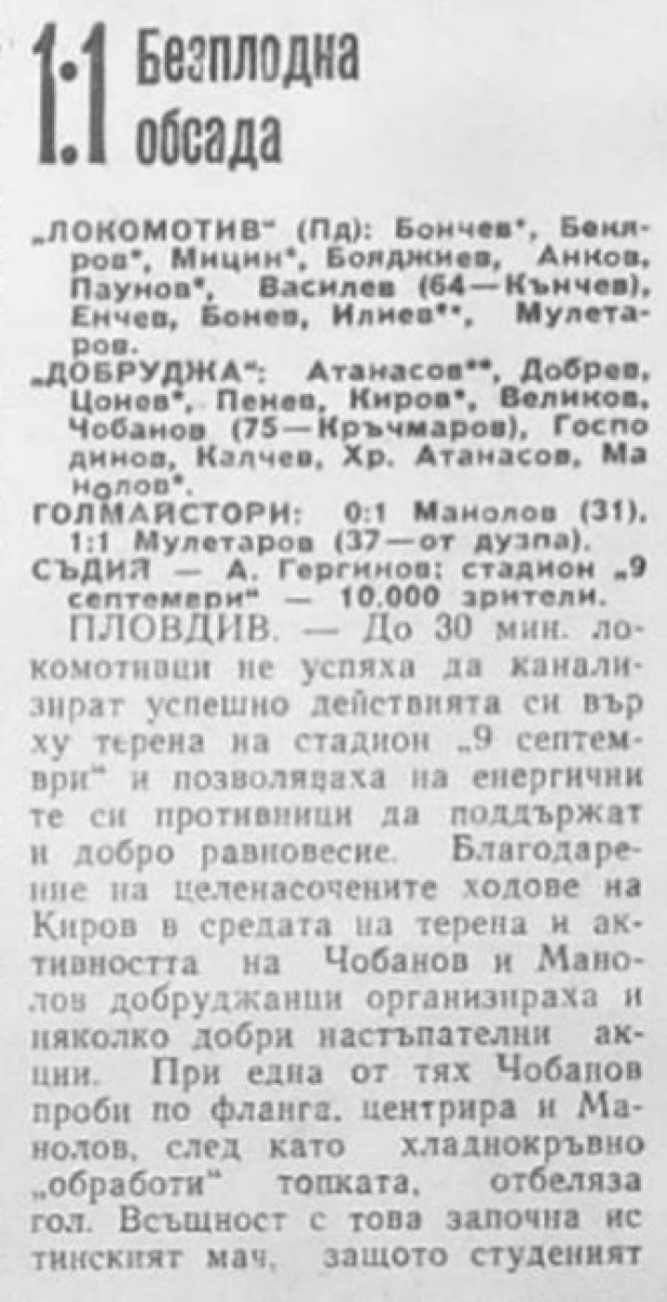 «Локомотив» Пловдив - «Добруджа» Толбухин - 1:1