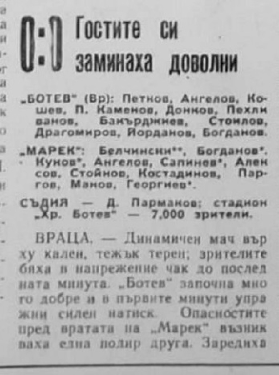«Ботев» Враца - «Марек» Станке-Димитров - 0:0