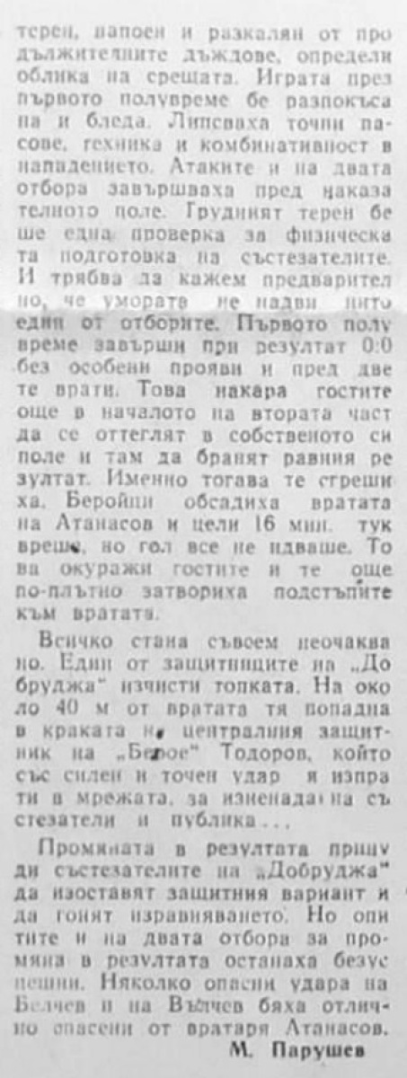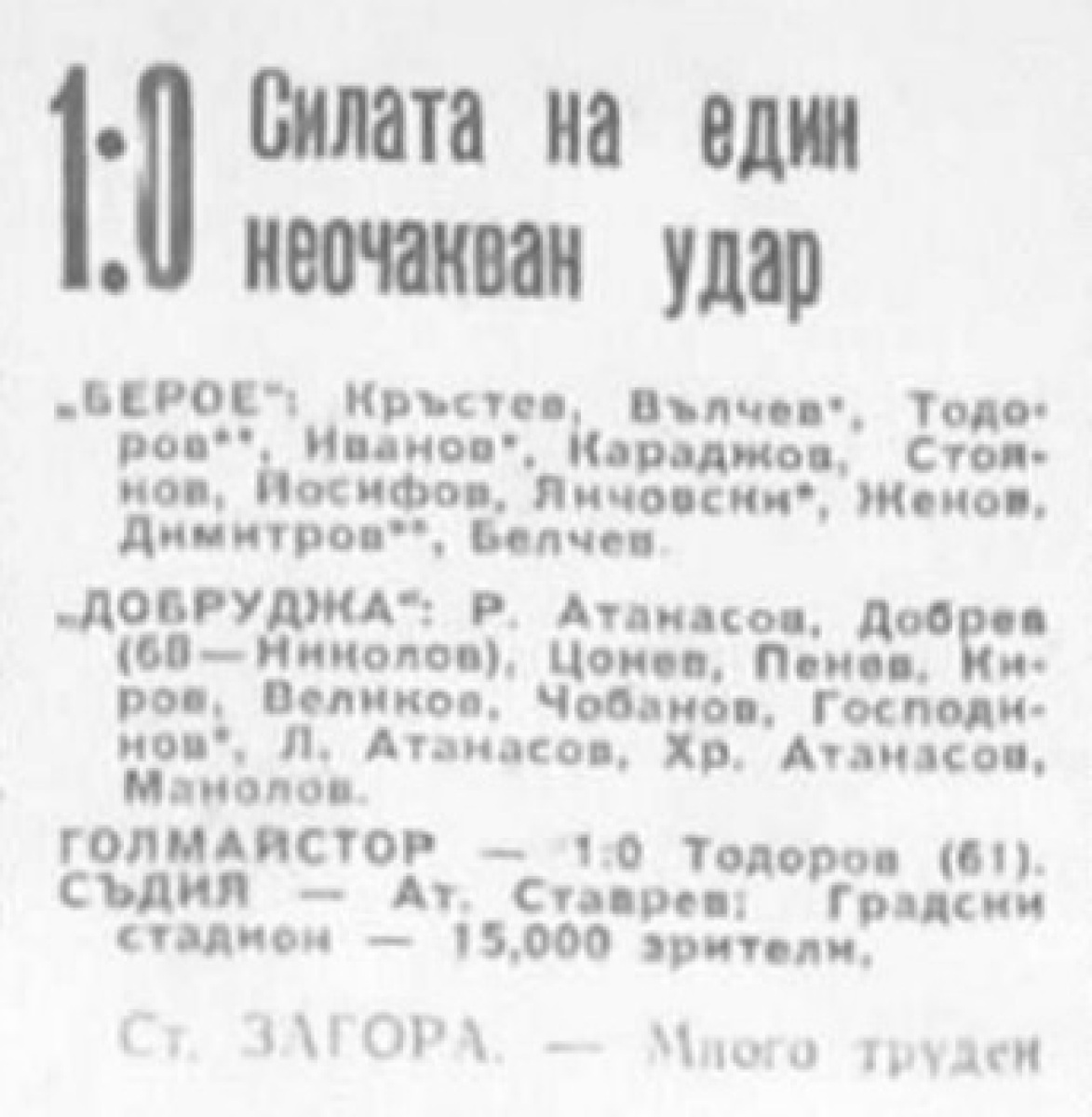 «Берое» Стара-Загора - «Добруджа» Толбухин - 1:0