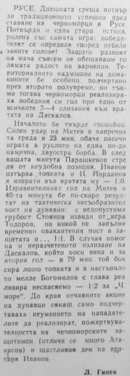 «Дунав» Русе - «Черно море» Варна - 1:2