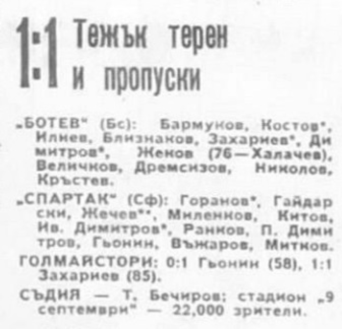 «Ботев» Бургас - «Спартак» София - 1:1
