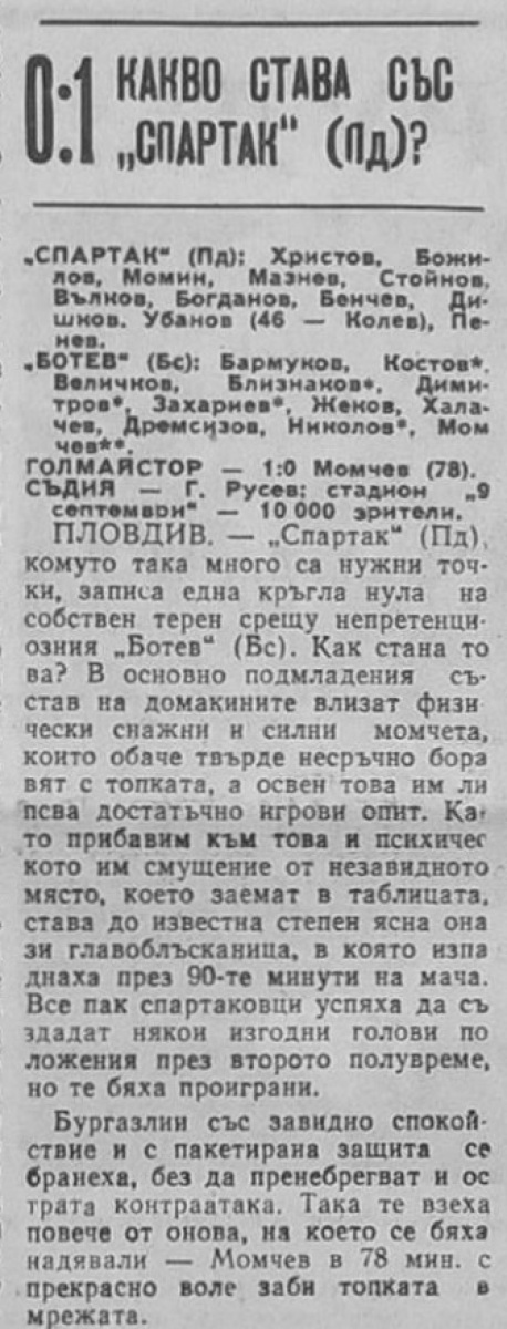 «Спартак» Пловдив - «Ботев» Бургас - 0:1