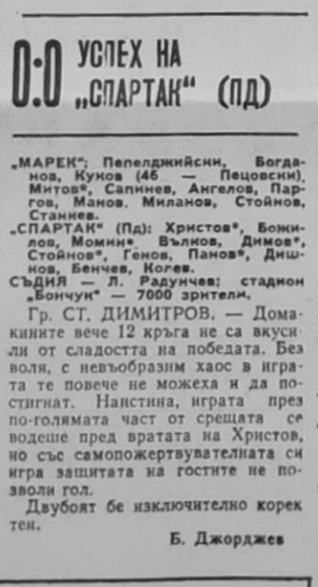 «Марек» Станке-Димитров - «Спартак» Пловдив - 0:0