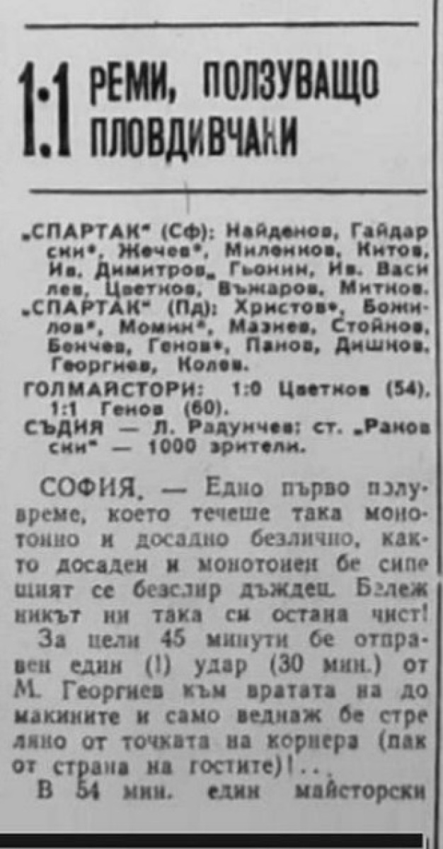 «Спартак» София - «Спартак» Пловдив - 1:1