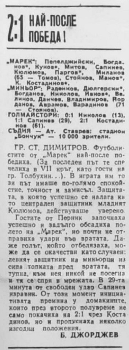 «Марек» Станке-Димитров - «Минёр» Перник - 2:1