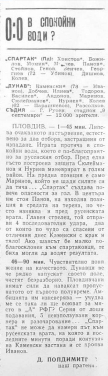«Спартак» Пловдив - «Дунав» Русе - 0:0