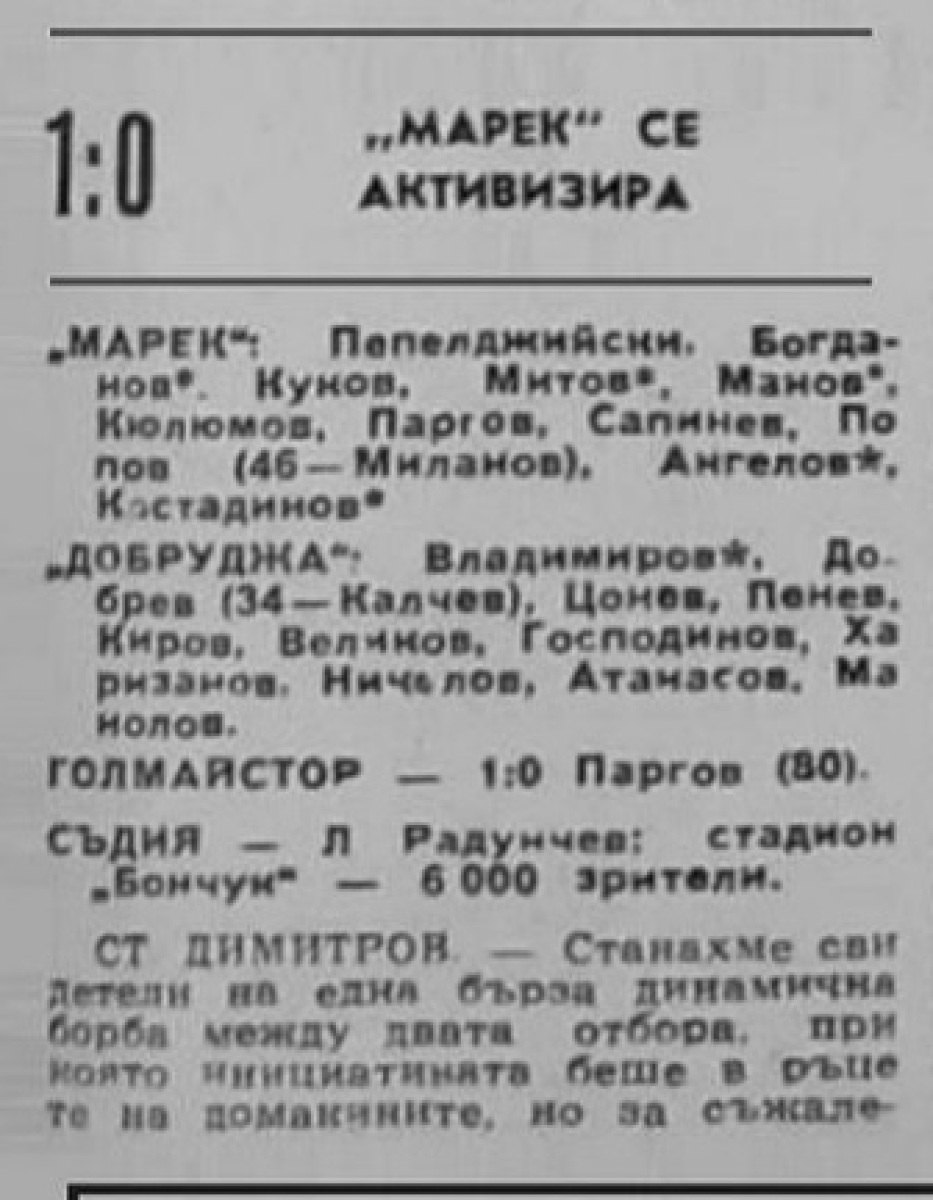 «Марек» Станке-Димитров - «Добруджа» Толбухин - 1:0