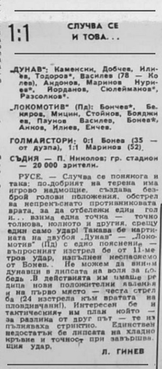 «Дунав» Русе - «Локомотив» Пловдив - 1:1
