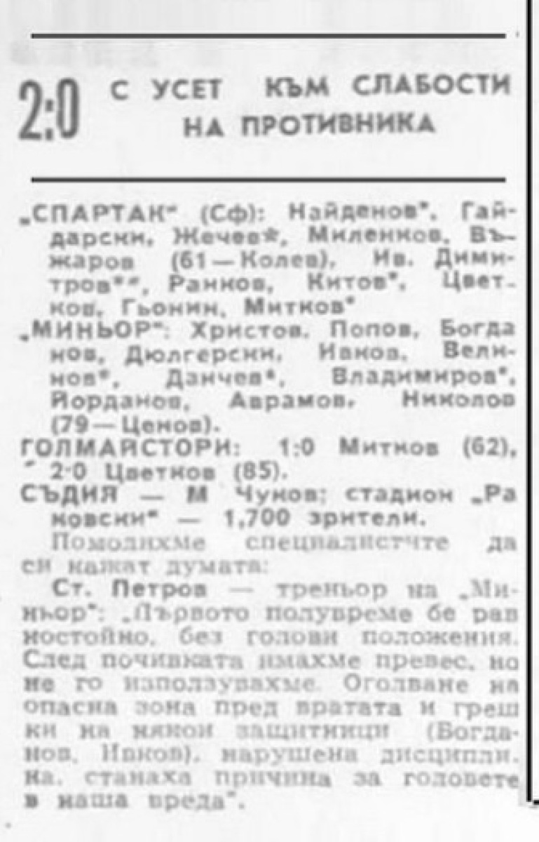 «Спартак» София - «Минёр» Перник - 2:0