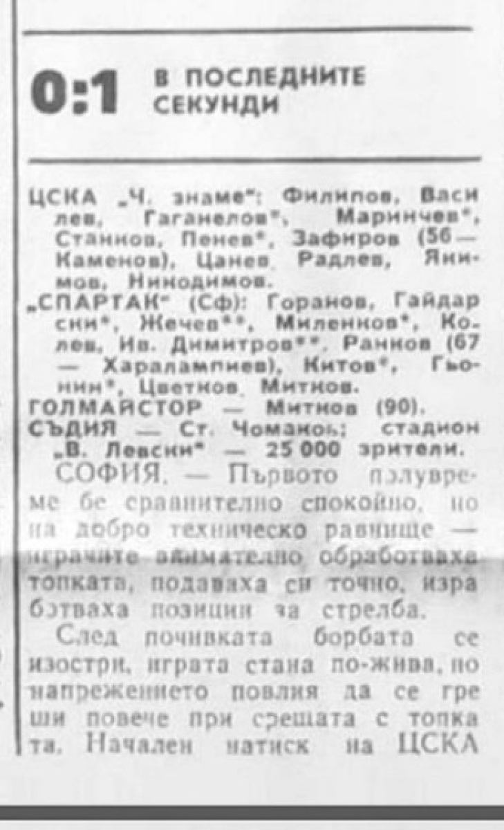 «ЦСКА Червено Знаме» София - «Спартак» София - 0:1