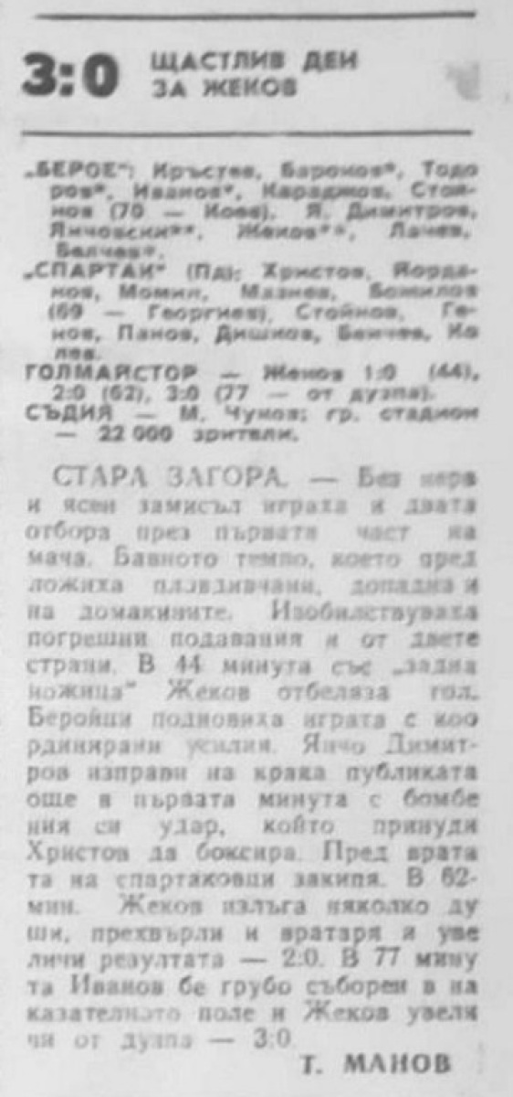 «Берое» Стара-Загора - «Спартак» Пловдив - 3:0