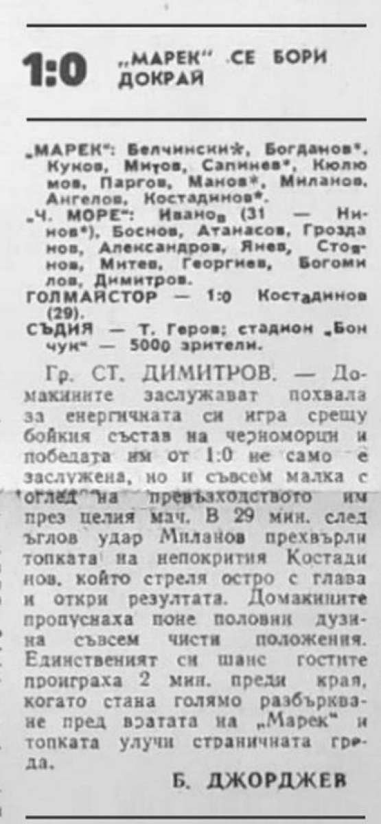 «Марек» Станке-Димитров - «Черно море» Варна - 1:0