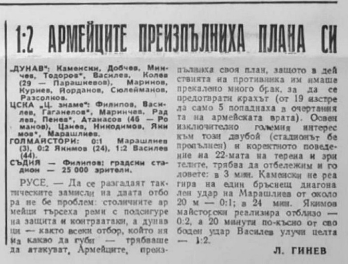 «Дунав» Русе - «ЦСКА Червено Знаме» София - 1:2