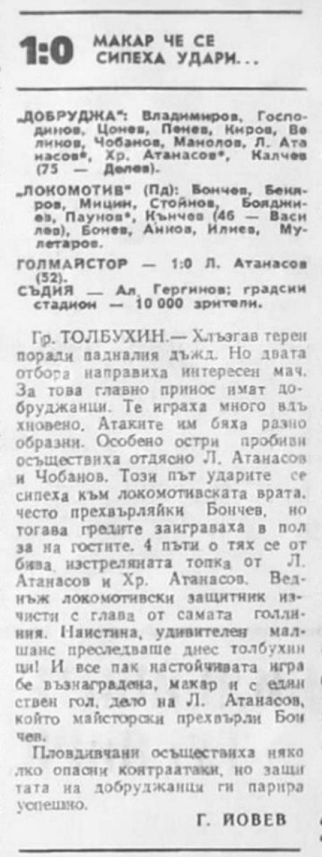 «Добруджа» Толбухин - «Локомотив» Пловдив - 1:0