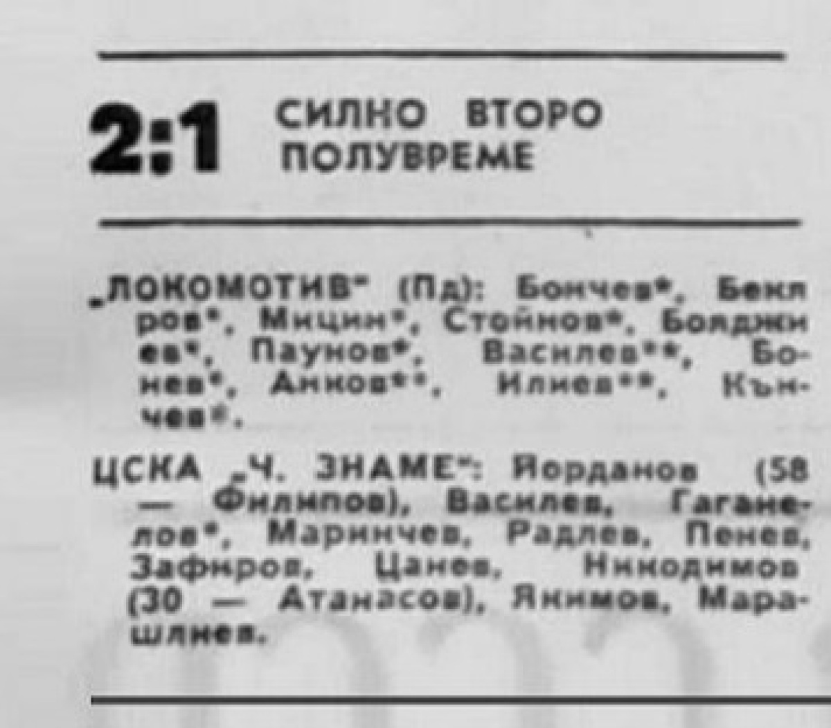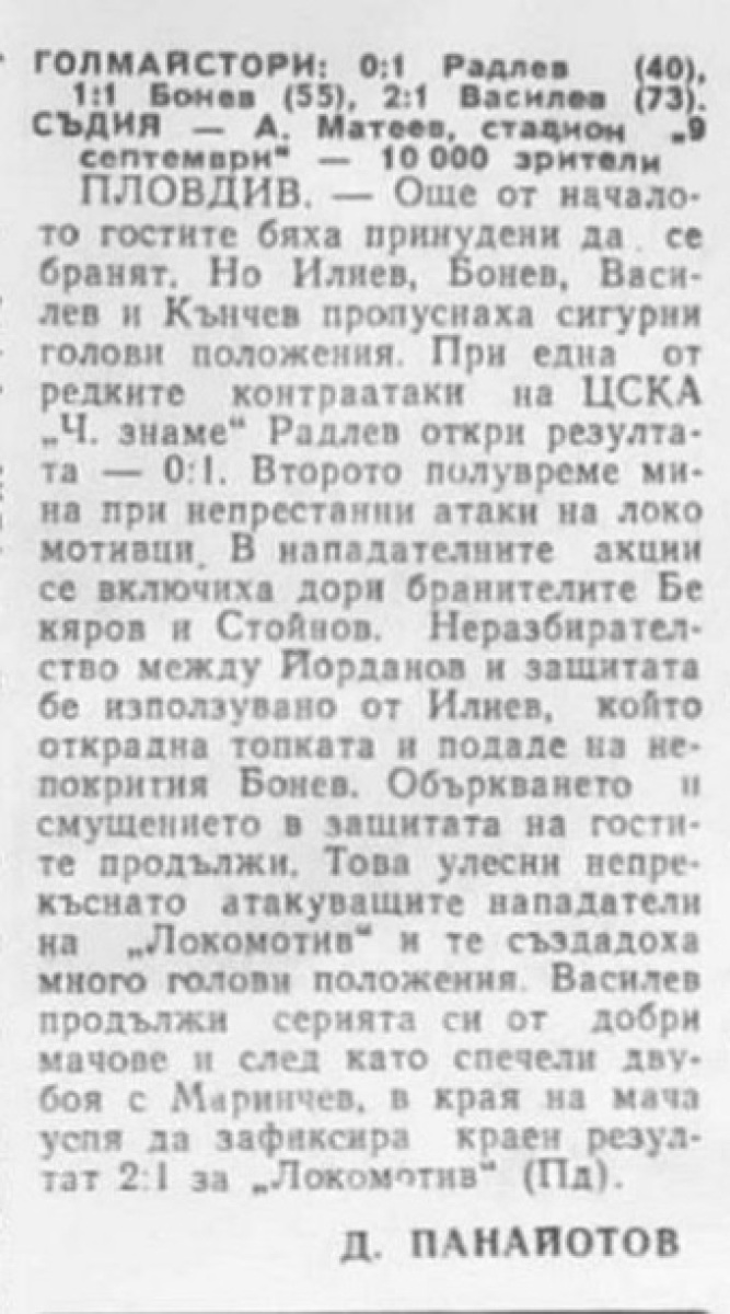 «Локомотив» Пловдив - «ЦСКА Червено Знаме» София - 2:1