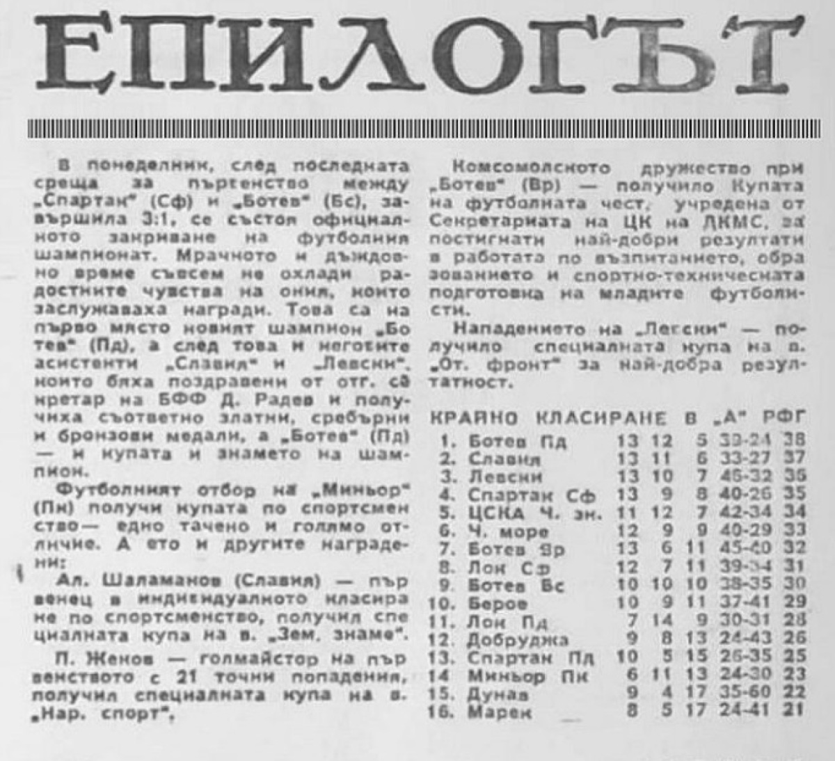 Чемпионат Болгарии 1966/67. Группа А
