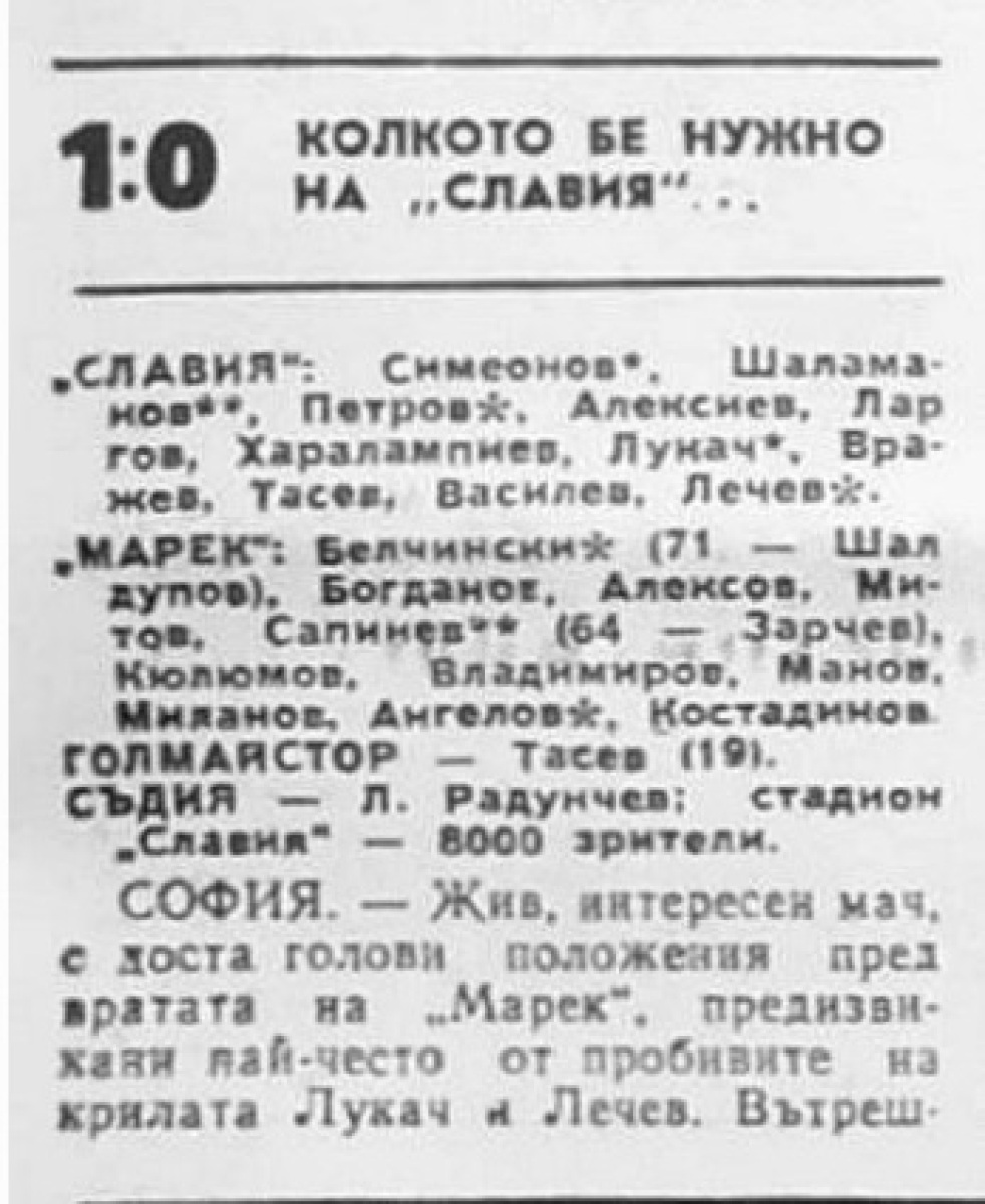 «Славия» София - «Марек» Станке-Димитров - 1:0