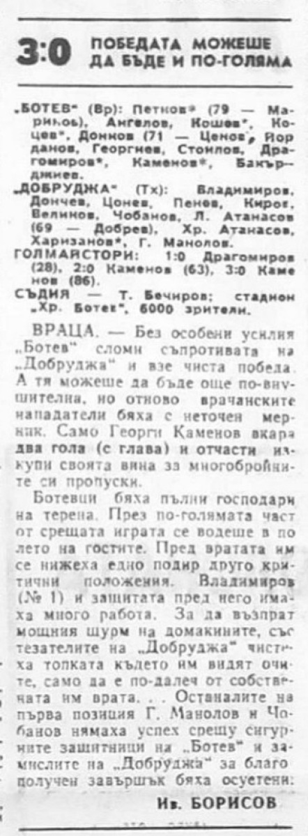 «Ботев» Враца - «Добруджа» Толбухин - 3:0