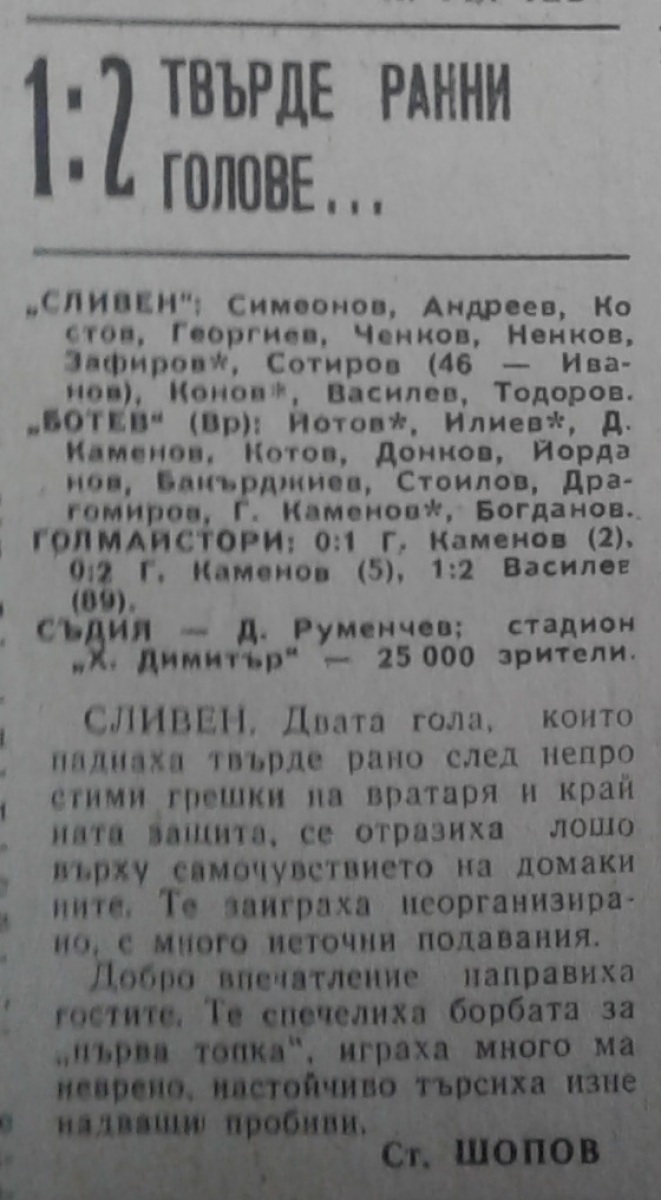 «Сливен» Сливен - «Ботев» Враца - 1:2