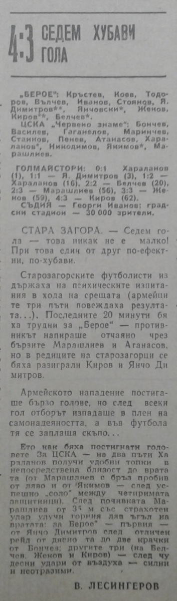 «Берое» Стара-Загора - «ЦСКА Червено Знаме» София - 4:3