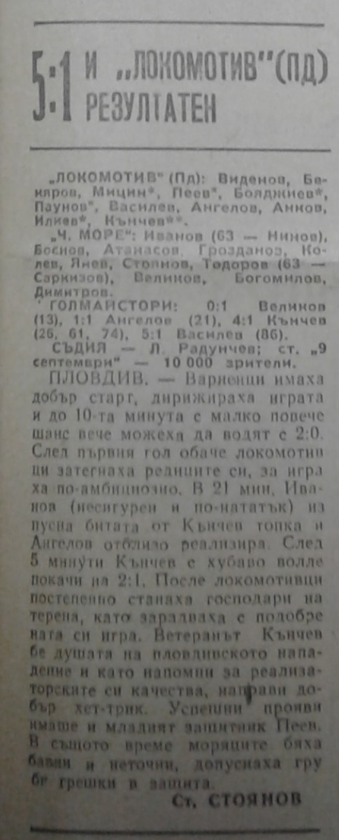 «Локомотив» Пловдив - «Черно море» Варна - 5:1