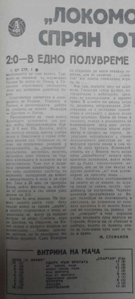 «ЦСКА Червено Знаме» София - «Спартак» София - 2:0