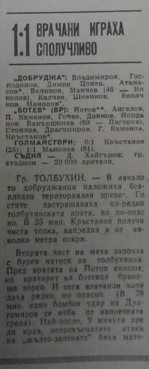 «Добруджа» Толбухин - «Ботев» Враца - 1:1