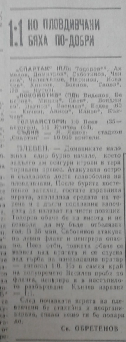 «Спартак» Плевен - «Локомотив» Пловдив - 1:1