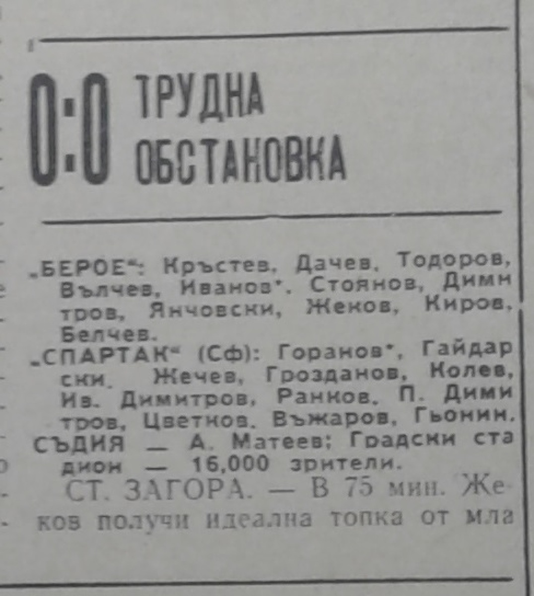 «Берое» Стара-Загора - «Спартак» София - 0:0