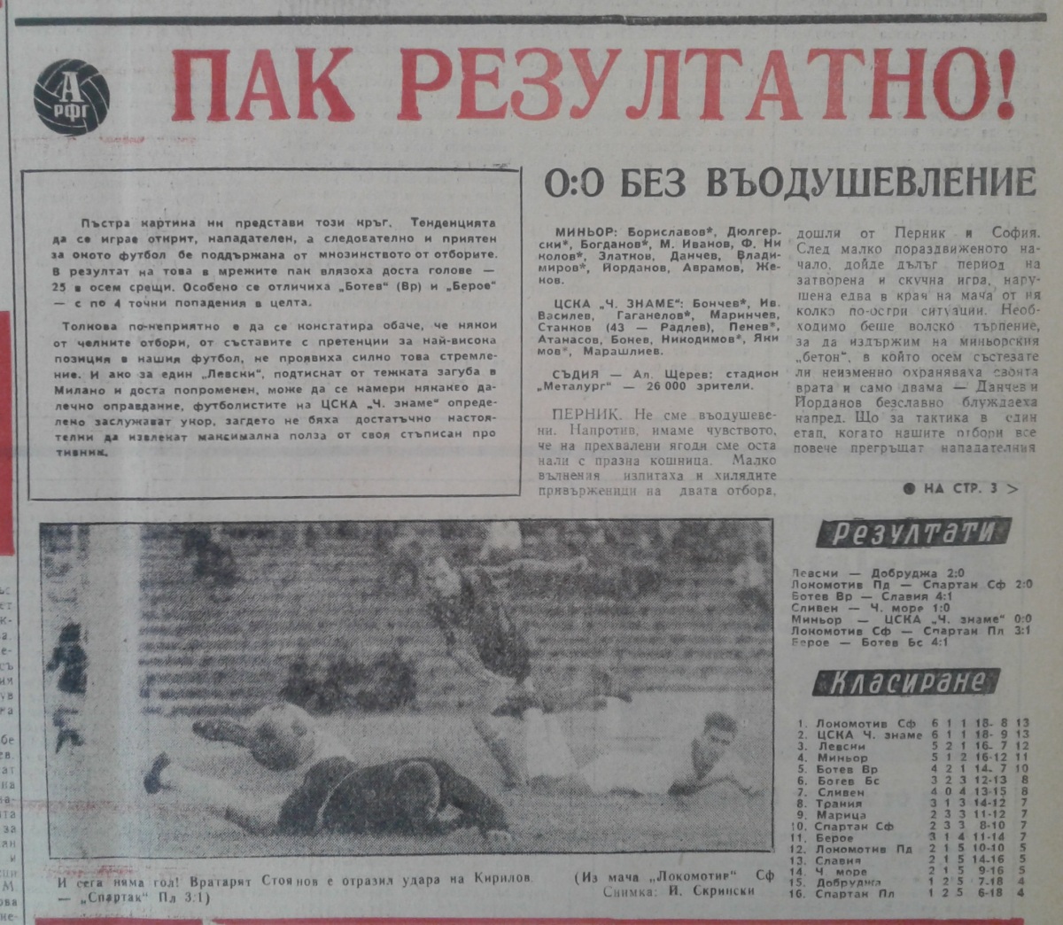 «Минёр» Перник - «ЦСКА Червено Знаме» София - 0:0