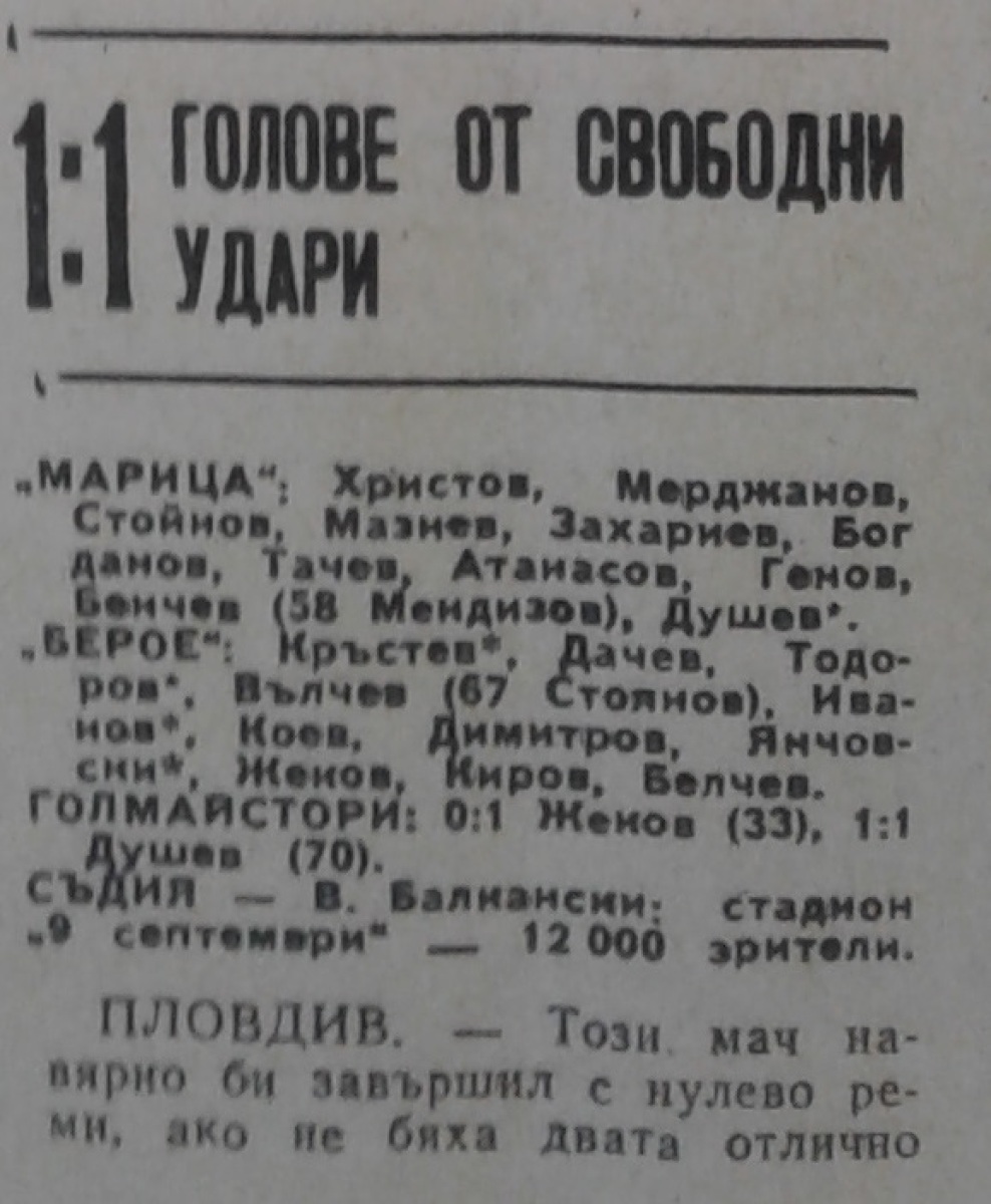 «Марица» Пловдив - «Берое» Стара-Загора - 1:1