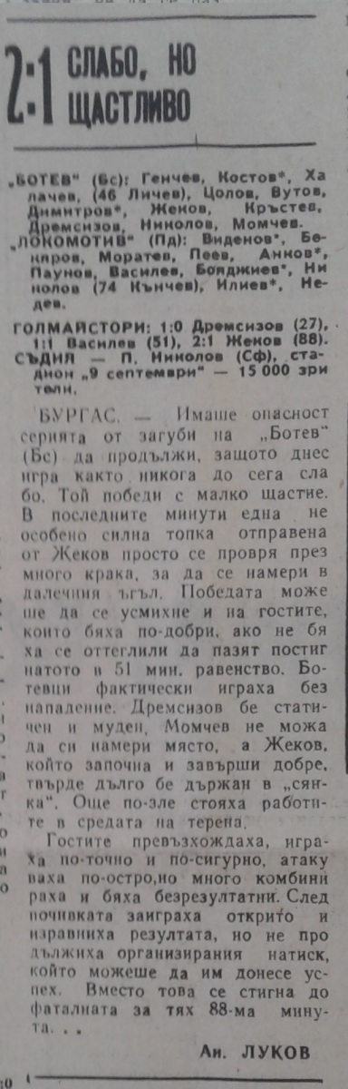 «Ботев» Бургас - «Локомотив» Пловдив - 2:1