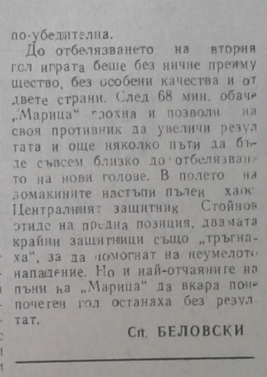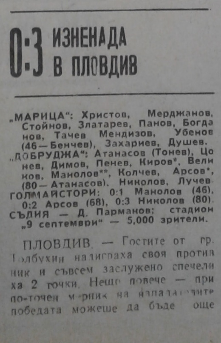 «Марица» Пловдив - «Добруджа» Толбухин - 0:3