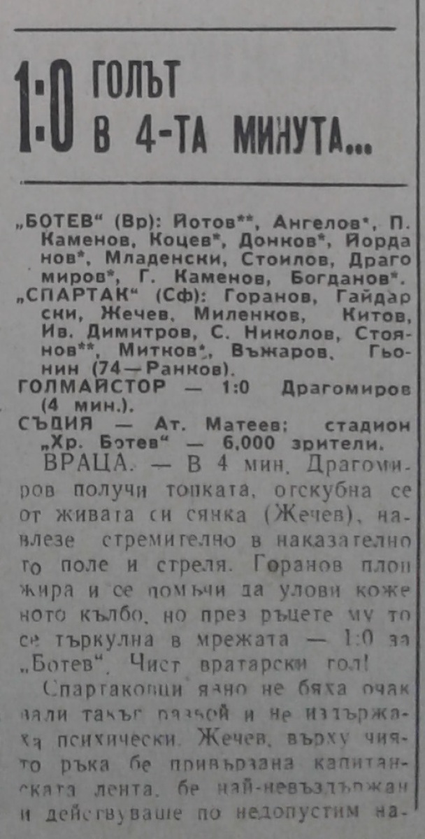 «Ботев» Враца - «Спартак» София - 1:0
