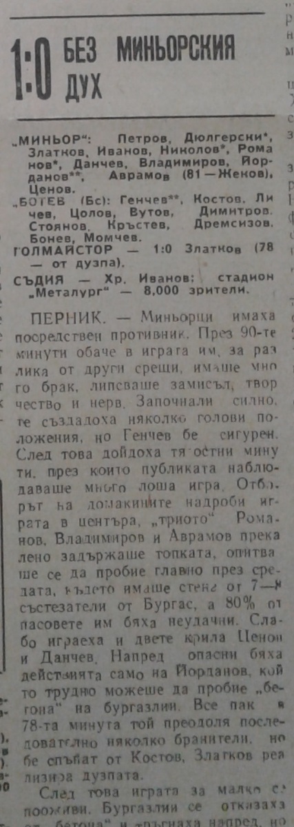 «Минёр» Перник - «Ботев» Бургас - 1:0