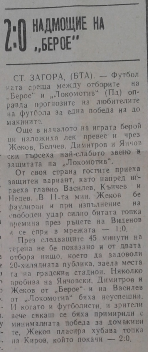 «Берое» Стара-Загора - «Локомотив» Пловдив - 2:0