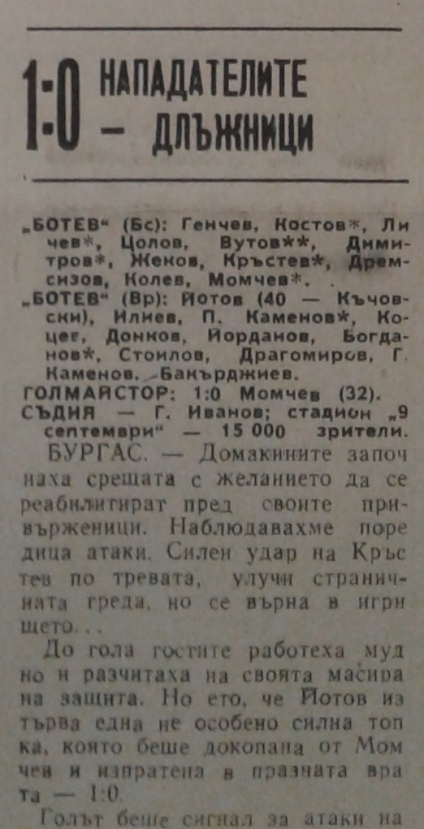 «Ботев» Бургас - «Ботев» Враца - 1:0